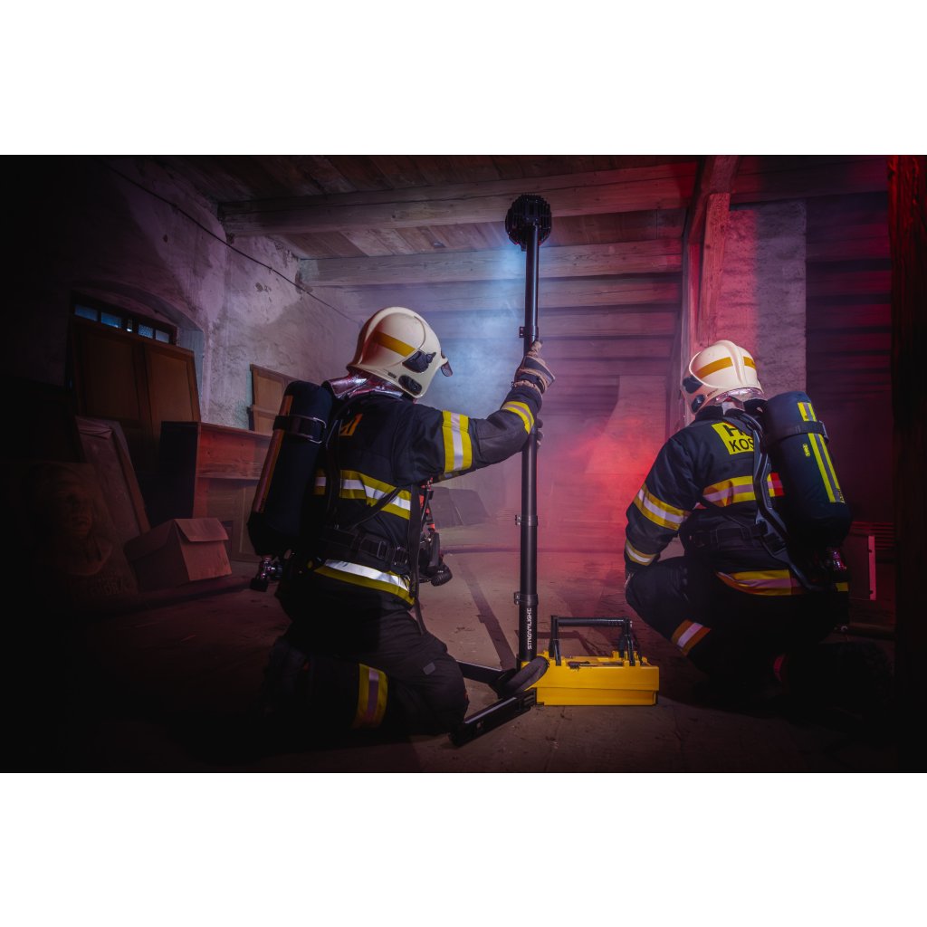 Osvětlovací těleso Scene Light je ideální pro policejní vyšetřovatele, hasičské složky a záchranné týmy. Hlava svítilny je osazena 12 ks výkonných LED diod C4, které produkují široký světelný kužel. Doba svícení pří napájení z vestavěné Pb baterie jsou 4 hod na plný výkon (5300 lm), 9 hod na střední výkon (2500 lm) a až 18 hod na nízký výkon (1300 lm). Těleso lze také napájet externím zdrojem a to použitím napájecího kabelu 12V DC nebo nabíječe 230V AC. Použitím externího zdroje napájení se zároveň dobíjí vestavěný akumulátor.