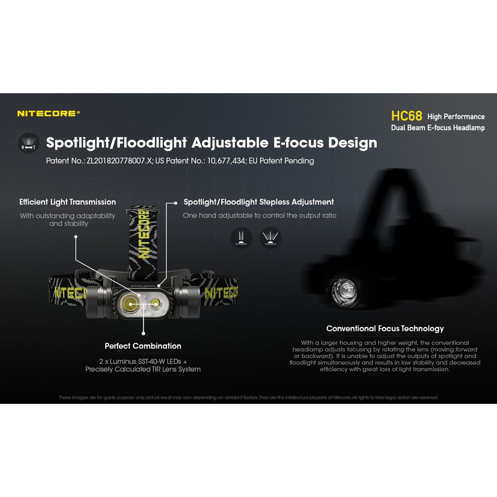NITECORE HC68, super-výkonná čelovka, plynulá změna kužele světla,