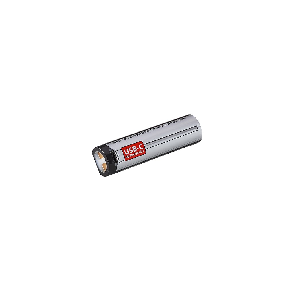 Nová Li-Ion baterie typu 21700, kterou lze napřímo dobít přes USB-C kabel díky integrovanému USB-C portu přímo v baterii. Baterie má také integrovaný indikátor nabíjení: červená - nabíjí se / zelená - nabito. Ochranu zajišťuje elektronika, která zabraňuje podbítí, přebití nebo zkratu. Díky vnějšímu nerezovému obalu je akumulátor vysoce odolný proti nárazu a korozi. Díky své životnosti je šetrná k životnímu prostředí, vydrží totiž až 500 nabíjecích cyklů.