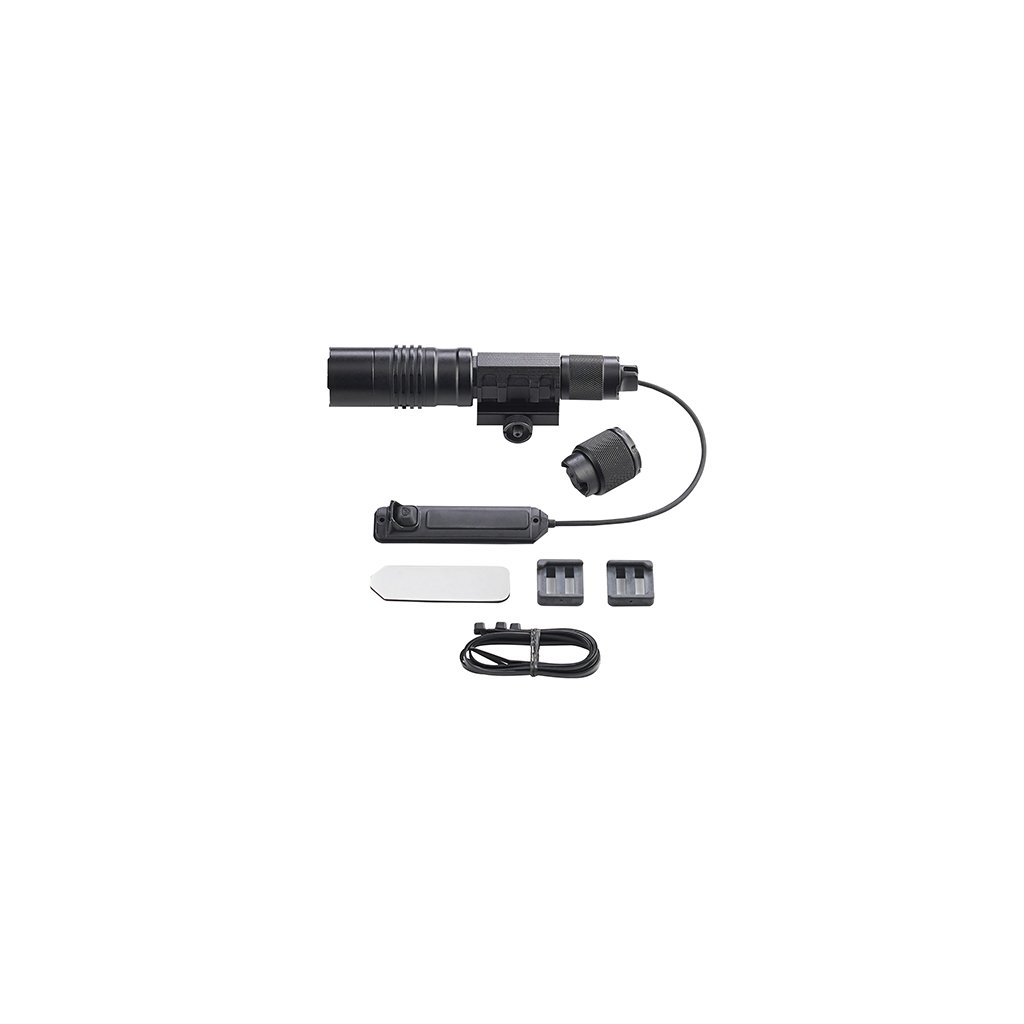 STREAMLIGHT PROTAC RAIL MOUNT HL-X LASER - je výkonná zbraňová LED svítilna se světelným výkonem 1000 lumenů a dosvitem až 332 metrů. Dále svítilna disponuje ČERVENÝM LASEREM, který se nachází v reflektoru svítilny. Napájení zajišťují 2x CR123 nebo 1x 18650. Perfektní optika vytváří koncentrovaný paprsek světla s optimálním periférním svícením. Svítilna je vybavena integrovanou montáží na picatinna rail (MIL-STD1913) . Svítilnu lze ovládat jak dálkovým tlakovým spínačem, tak standartním patním spínačem. Patní spínač je vybaven dvěmi tlačítky. Jedno slouží k ovládání světla samotného, druhé k ovládání laseru. Pokud stisknete obě tlačítka v jeden okamžik, dojde k aktivaci jak světla, tak i laseru zároveň. PROTAC RAIL MOUNT HL-X LASER nabízí tři operační naprogramovatelné režimy: 1.Vysoký/stroboskop; 2. Vysoký; 3. Nízký/Vysoký; Je určena pro střední a dlouhé zbraně. Díky použitým materiálům bezpečně odolává zpětným rázům. Světelný výkon lze otestovat na virtuální střelnici zde.